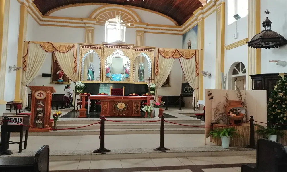 Inside the church is the image of the Virgin of Cotoca, patron saint of the region, which is deeply venerated. The figure is notable for its serene expression and has been dressed and adorned with offerings brought by devotees over the years.