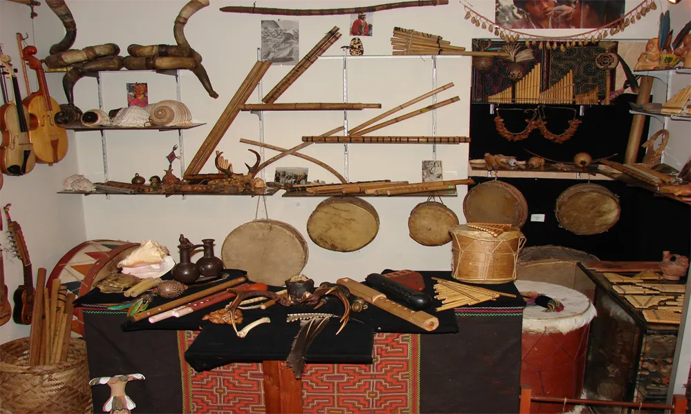 - Instrumentos do Leste da Bolívia: Aqui, destacam-se a marimba e o cuatro das comunidades do leste, refletindo as influências africanas e caribenhas que chegaram à região. Instrumentos das Terras Baixas: Exposições que incluem instrumentos indígenas da Amazônia e do Gran Chaco, como o tamboo e vários tipos de flautas.
